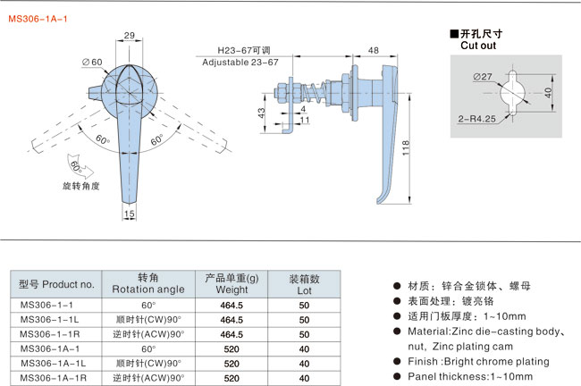 ● Material:Zinc die-casting body、nut, Zinc plating cam
