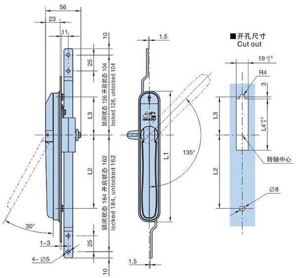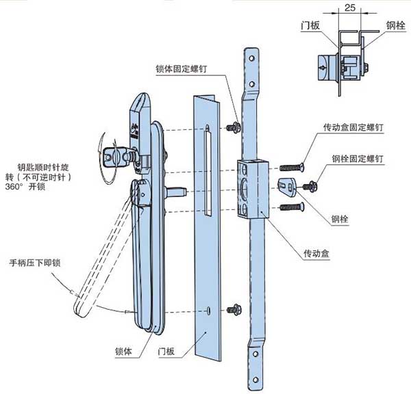 ● Material:zinc die-casting body ,Zinc plating cam、fixing parts、M.S.nickel plating driving rod