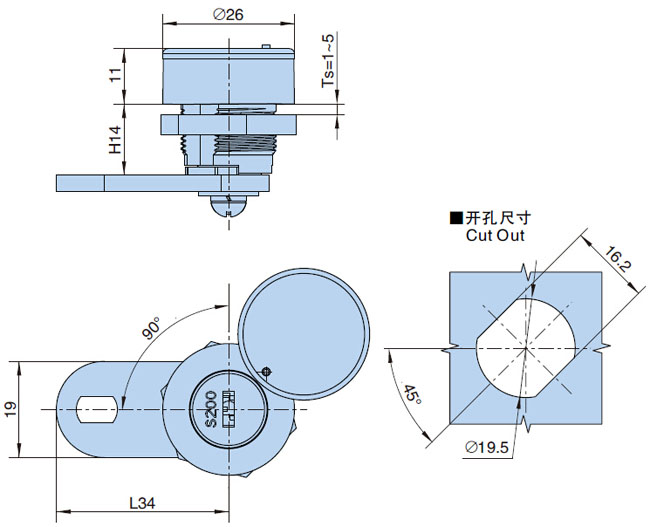 ● Function:90°rotation to lock and unlock.