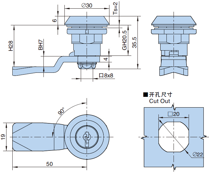 ● Material:zinc die-casting body,Nut,M.S. INSERT,Zinc plating cam;