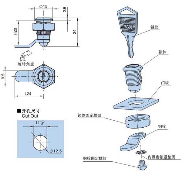 ● Material:Zinc die-casting body,Nut,Zinc plating cam、fixing parts
