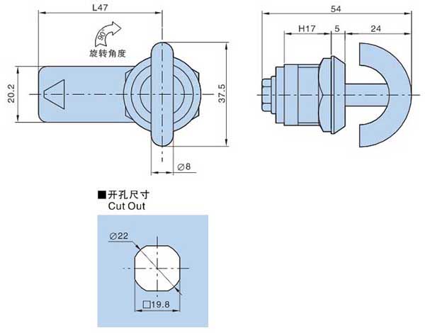 ● Material:Zinc die-casting body M.S. Zinc plating nut cam
