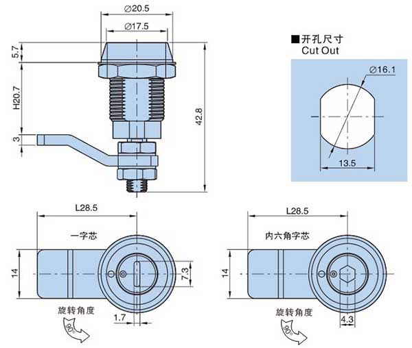 ● Material:Zinc die-casting housing and insert, Zinc plating Screw Bolt