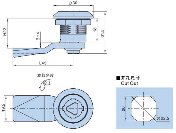 ● Remark:Auto reposition lock, cam cutout 口8×8