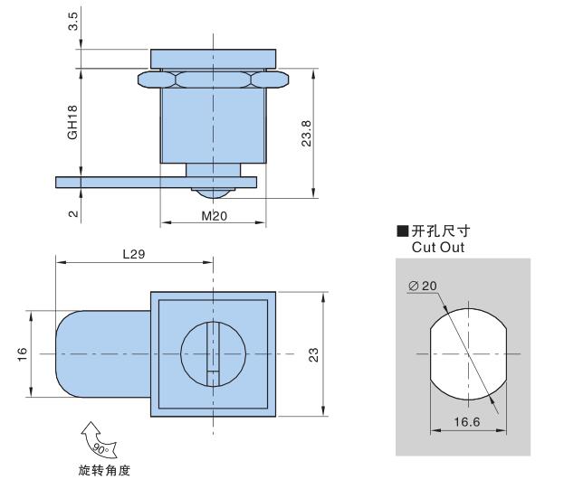 ● Material:Zinc die-casting body,Nut,Zinc plating cam,Brass key