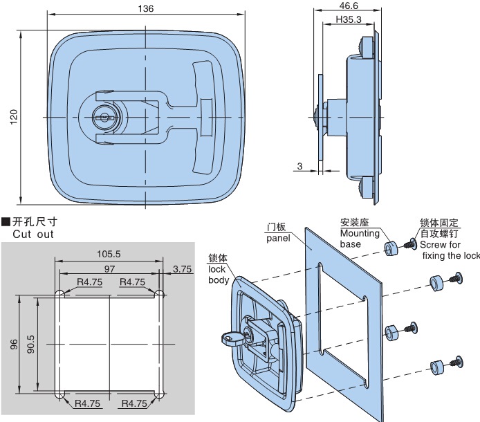 ● Material:PA66 handle and housing,Zinc plating cam