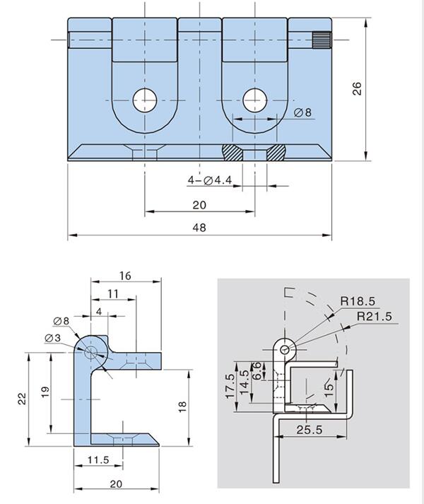 ● Material:Zinc die-casting hinge,stainless steel and nickel plating steel pin are available