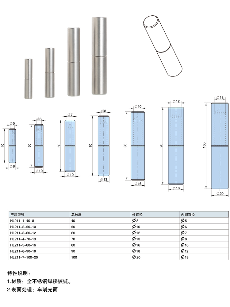 ● Material: All stainless steel welded hinges.